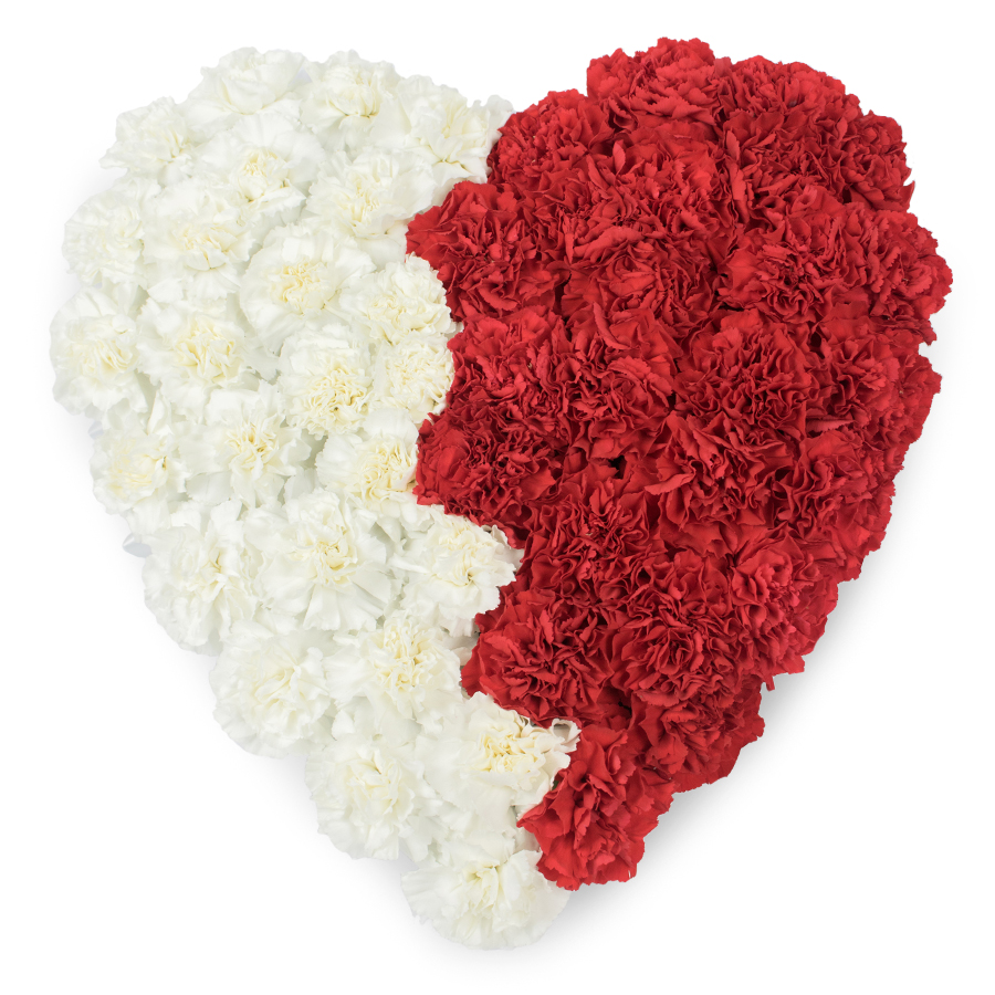Discover the beauty and elegance of our Mixed Carnations Heart Bouquet, a stunning arrangement crafted to convey your deepest sentiments. This unique bouquet features a harmonious blend of white and red carnations, meticulously hand-selected for their exceptional freshness and vibrant colors.